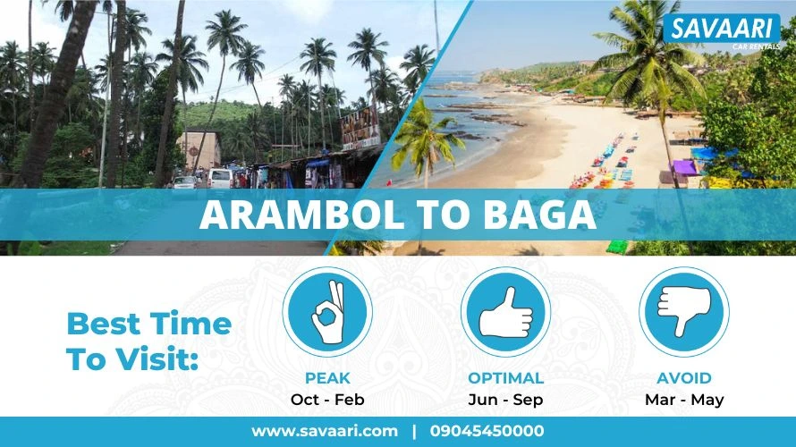 Traveling from Arambol to Baga is a delightful choice for those seeking a shift from the laid-back vibe of Arambol to the energetic atmosphere of Baga. Arambol, known for its pristine beaches and bohemian aura, offers a peaceful retreat, and opting for a car rental in Arambol ensures a thorough exploration of Arambol. Once you decide to explore Baga, you can opt for Savaari’s reliable taxi service to get you to Baga and back if needed. With Savaari, you can effortlessly plan your journey, exploring the serene beaches and then smoothly making your way to the bustling shores of Baga.