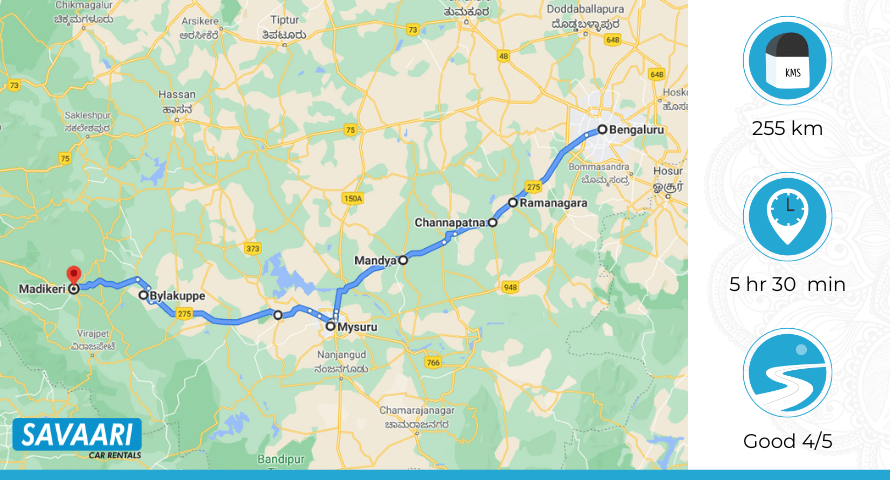 | Coorg to Mysore | 118 km | 2 hours and 35 minutes |