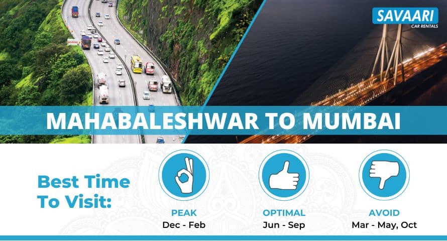 Mumbai can be visited throughout the year. Mumbai enjoys classic coastal weather with hot and humid summers, refreshing monsoons, and pleasant winters. But the best time to visit Mahabaleshwar to Mumbai by car is undoubtedly the monsoon season when the dewy rain makes the road trip and the stay an experience unlike any other.