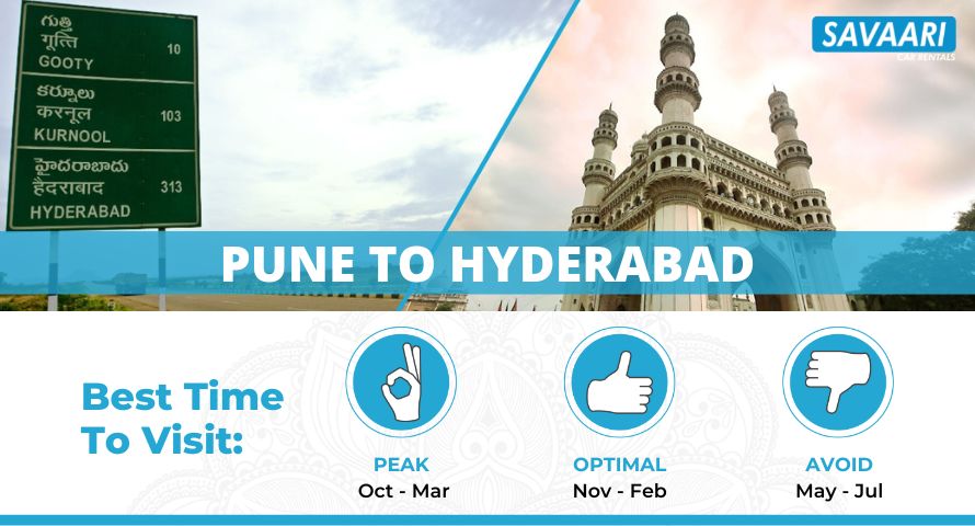But instead, if you’re travelling from Pune to Hyderabad by road with the elderly or a family of children, driving is the most cost-effective option. Besides that, with Savaari’s fully customizable Pune to Hyderabad trip deals, you can stop at any sightseeing location along the way to make your trip quite unforgettable. Allow us to assist you in determining the best road routes from Pune to Hyderabad. Travel comfortably by hiring a cab from Pune to Hyderabad with Savaari.