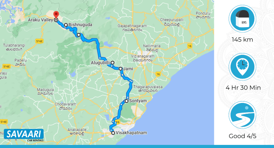 This is the shortest route and the best way to travel between Vizag and Araku Valley. It is also the fastest because the Vizag to Araku Valley traffic on this route is regular and you can avoid road closures. The distance between Vizag and Araku Valley on this route is somewhere around 114 KM and takes roughly 3.5 hours. Always check live maps and instant traffic updates for the latest information on the road conditions from Vizag to Araku Valley.