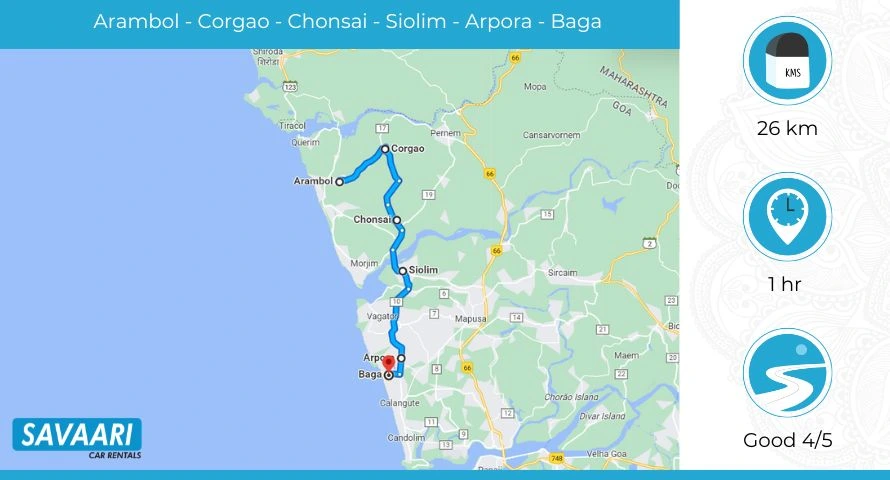Traveling from Arambol to Baga is a delightful choice for those seeking a shift from the laid-back vibe of Arambol to the energetic atmosphere of Baga. Arambol, known for its pristine beaches and bohemian aura, offers a peaceful retreat, and opting for a car rental in Arambol ensures a thorough exploration of Arambol. Once you decide to explore Baga, you can opt for Savaari’s reliable taxi service to get you to Baga and back if needed. With Savaari, you can effortlessly plan your journey, exploring the serene beaches and then smoothly making your way to the bustling shores of Baga.