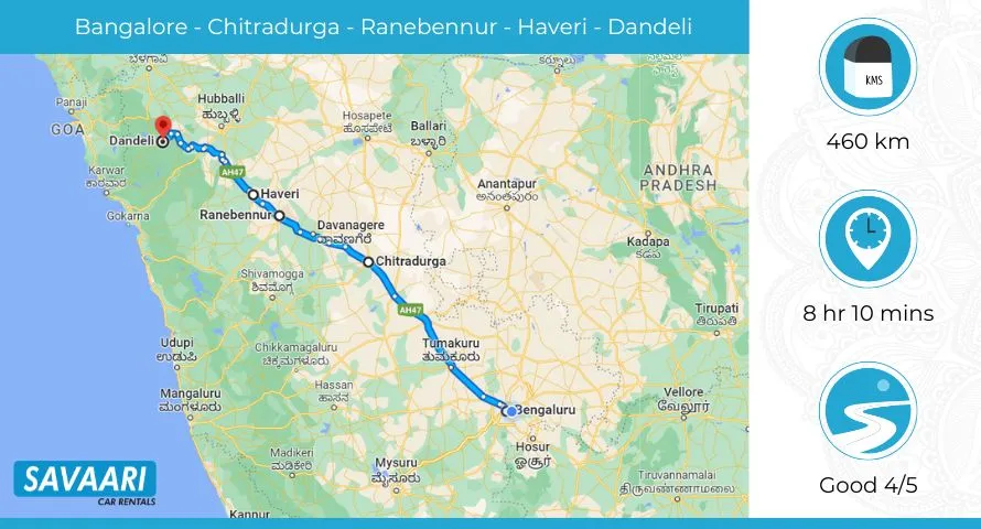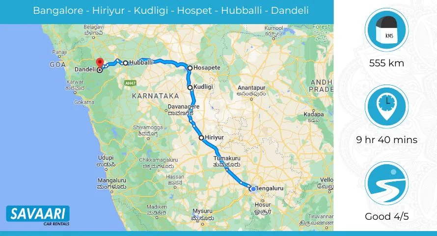 To get an exclusive offer for the Bangalore to Dandeli route, download Savaari’s cab booking app.