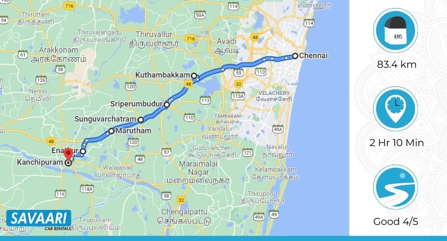 Here’s the basic route map from Chennai to Kanchipuram along this route: