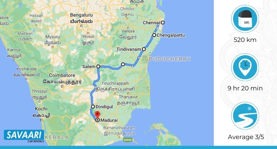 Here’s a basic Chennai to Madurai road map for this route: