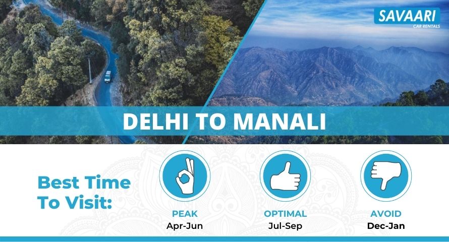 The ideal time for a Delhi to Manali road trip is from March to June and September to early December. The roads are clearer, and the weather is perfect for sightseeing. Avoid peak monsoon (July–August) due to landslides, and be cautious in winter (late Dec–Feb) as snow can make the drive risky. Whether you’re going by road, by flight, or exploring Delhi to Manali by train alternatives, the road trip remains the most rewarding for nature lovers.