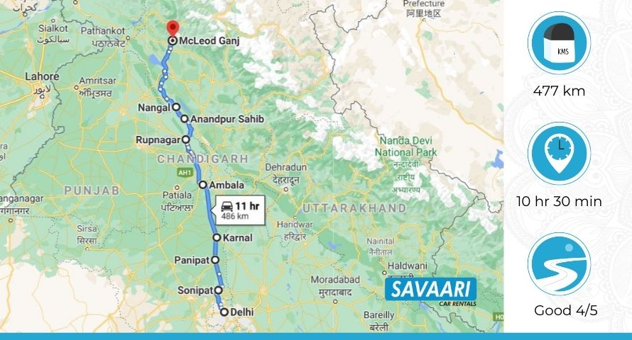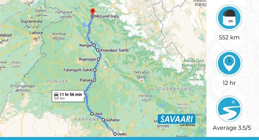 Here’s a basic Delhi to McLeodganj road map for this route: