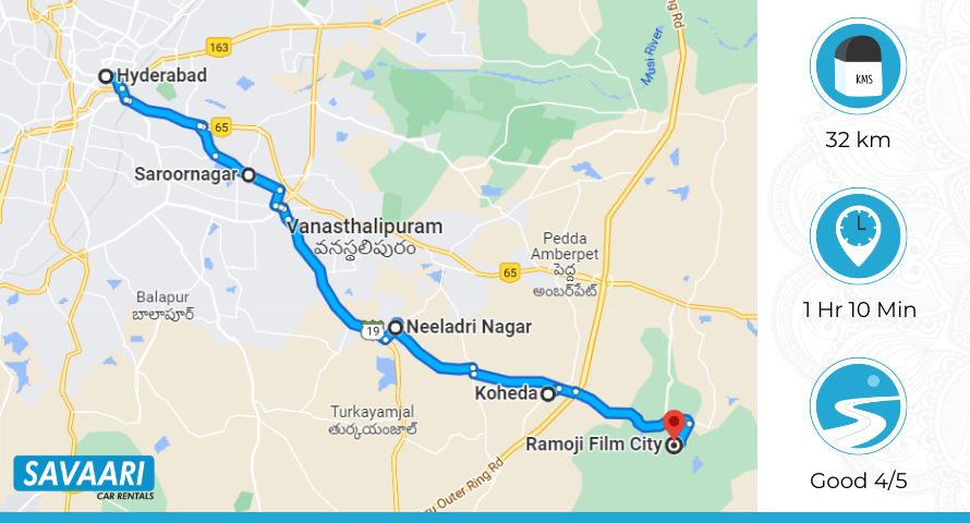 Here’s the basic route map from Hyderabad to Ramoji Film City-