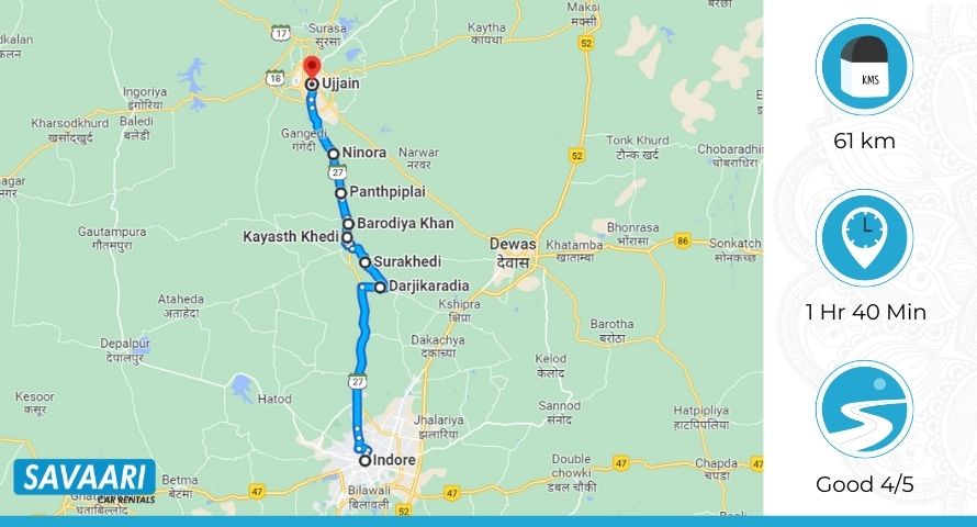 Route 1: Distance and Time Taken from Indore to Ujjain via Ujjain – Indore Road
