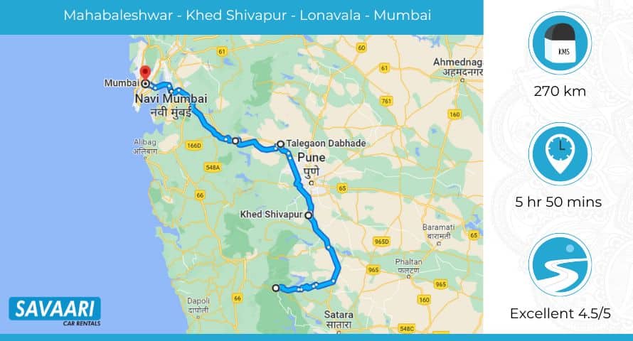 | Travel Time for Mahabaleshwar to Mumbai | 5 hours and 02 minutes |