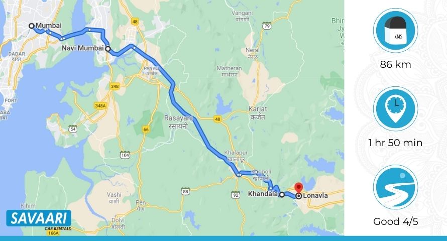 | Lonavala to Mumbai | 86 km | 2 hours |