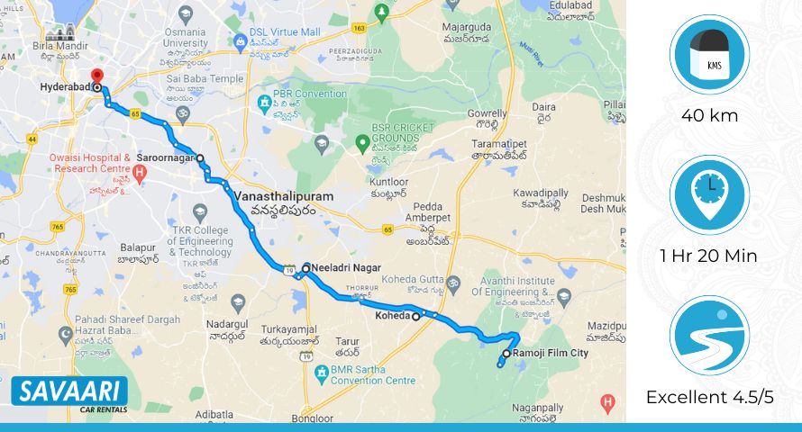 Here’s the basic route map from Ramoji Film City to Hyderabad-