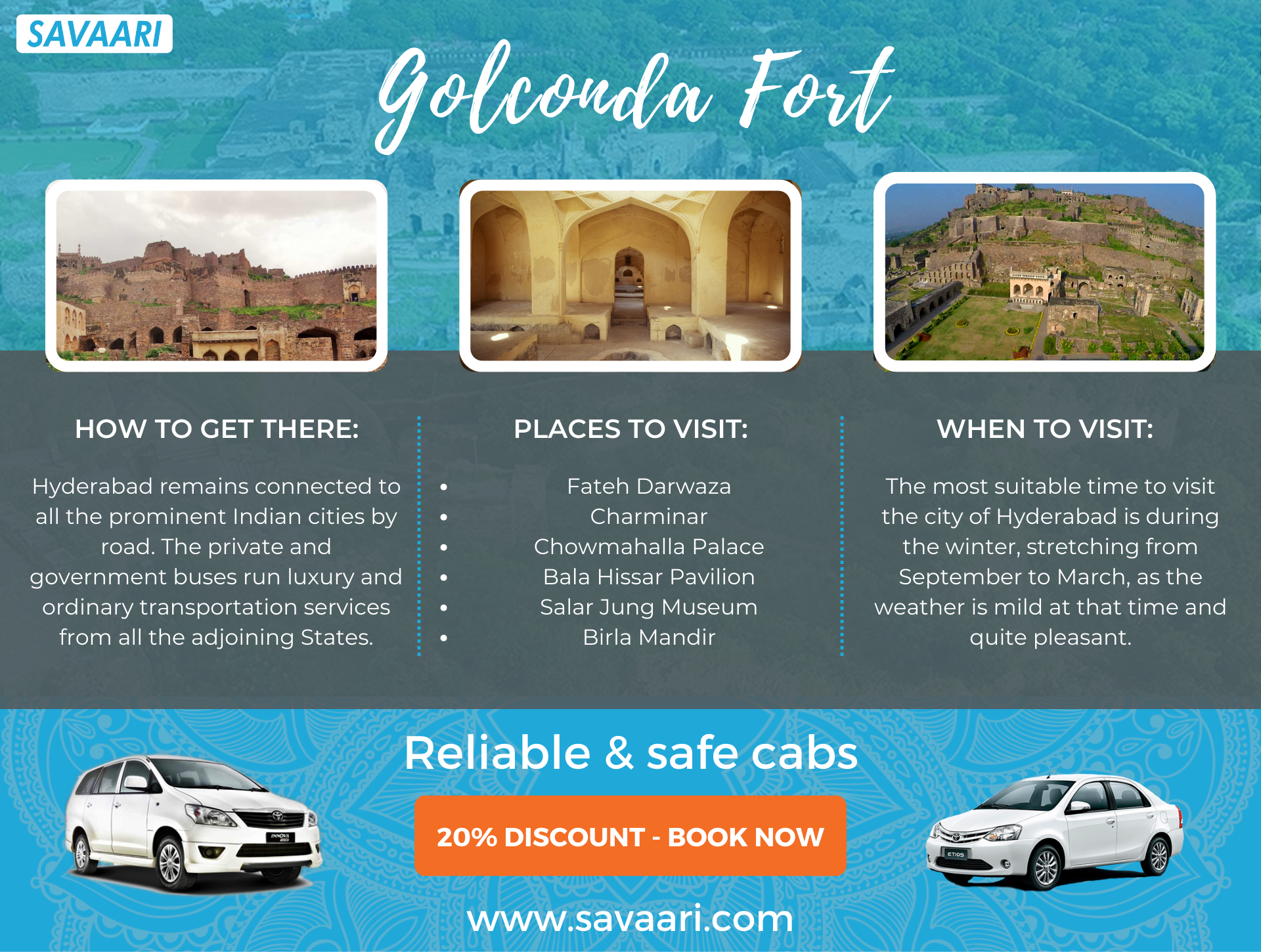 One of the most remarkable landmarks in Hyderabad, Golconda Fort, is a magnificent structure famous for its thoughtful architecture and historical importance. Renting a chauffeur-driven car from Hyderabad is the most convenient way to explore Golconda Fort. Keep scrolling to read the full travel guide, Golconda Fort.