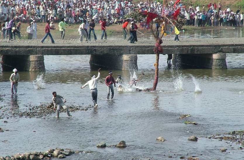 A stone-pelting ceremony called “Pathar Ka Mela” is held in Dhami, Himachal Pradesh, as a devotional celebration, and getting struck during the festivities is considered lucky. Every year after Diwali, two groups of locals meet to fling stones at one another, and the blood extracted from those injured is used to apply tilak to the idol of Goddess Kali at a nearby temple.