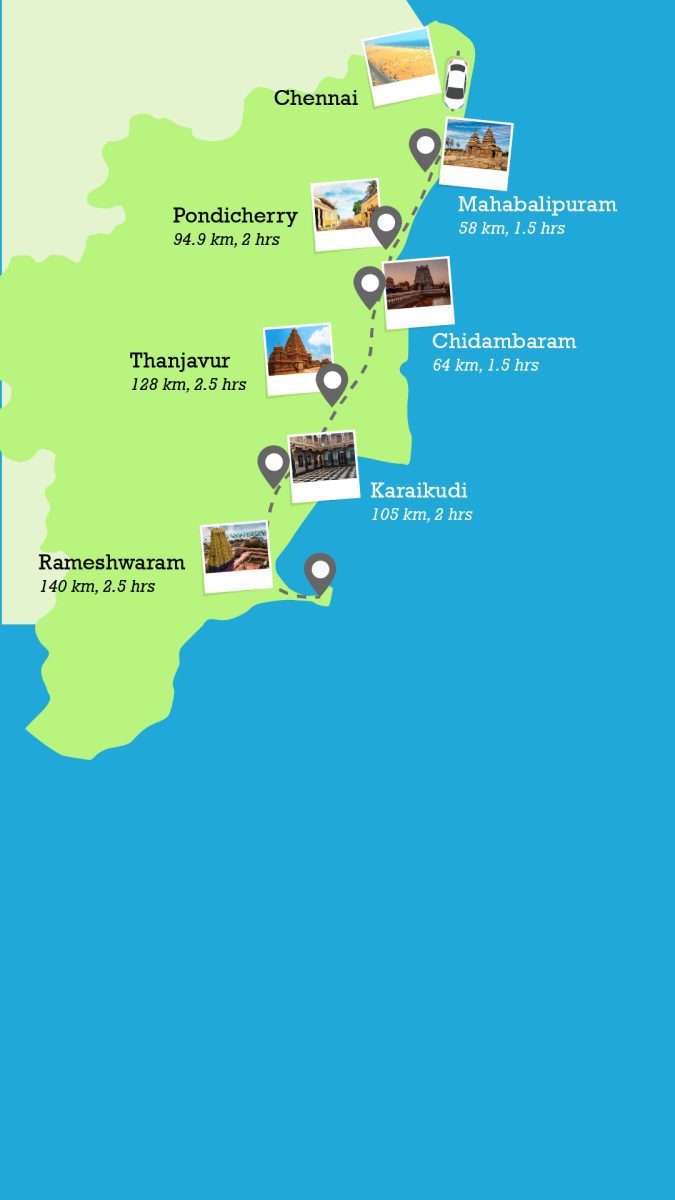 Famous for its intricately carved temples and rock-cut caves, Mahabalipuram is a historically important and well-loved destination located 58 km from Chennai.
