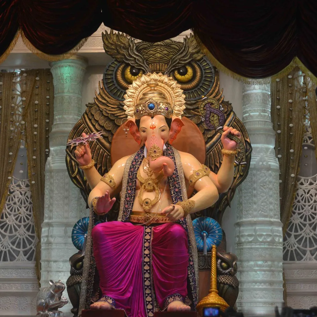 Situated in the heart of Lalbaug Market, this majestic Ganesh is complemented by a throne shaped like a majestic owl, symbolizing wisdom. Drawing an average of 1.5 million viewers daily, the idol is believed to have the divine power to fulfil wishes.